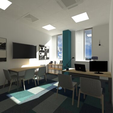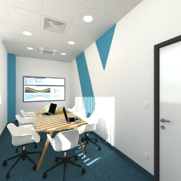 A tervezés során kiemelt figyelmet fordítottunk arra, hogy az iroda designja illeszkedjen a megrendelő cég arculatához. Ennek érdekében az arculati színeket és stílusjegyeket használtuk fel a belső tér kialakításában, hogy az iroda minden része összhangban legyen a vállalat identitásával és brandjével.