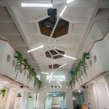Az iroda lelke a két szint belmagasságú középső, galériás tér, melyet természetes fény önt el a felülvilágítókon keresztül. Ez a multifunkcionális tér rugalmasan átalakítható közösségi rendezvényekre, előadásokra, de emellett ideális laza munkatérként is szolgál a bejáró dolgozók számára. A tágas tér mellett számos kisebb-nagyobb zárt iroda áll rendelkezésre, lehetőséget teremtve egyéni munkára. Továbbá, bérelhető tárgyalók is rendelkezésre állnak a privát megbeszélésekhez vagy kliensek fogadásához.
