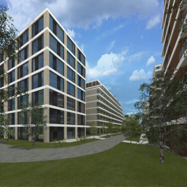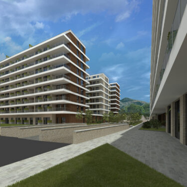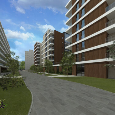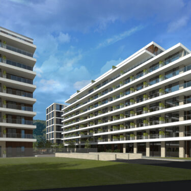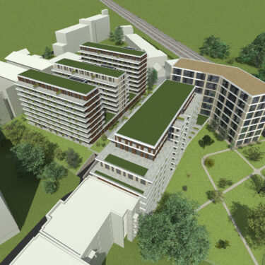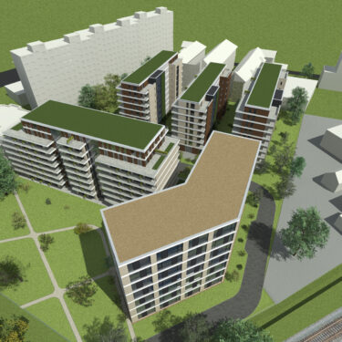 A tervezés során a lakásokat úgy alakítottuk ki, hogy élhető otthonokat teremtsünk, melyek tájolás és akusztikai szempontból is minden igénynek megfelelnek. Mindemellett kiemelkedően fontos volt az épületek, épületrészek közötti távolságok megtartása, figyelembe véve a lakások közötti átlátás minimalizálását. A városi szövetet megvizsgálva világossá vált a két telek más-más beépítéssel való kezelése. Ennek eredményeként a meglévő panelház melletti területre egy több traktusos északi tájolású és a zajforrás felé zárt épületsor jött létre. A másik telek a már meglévő zártsorú beépítést követő épületként formálódott meg, mely irodaépülettel zár a vasút felé.