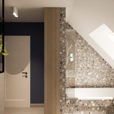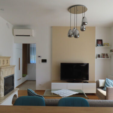 A feladatunk a teljes belsőépítészeti átalakítás volt, főleg a földszinten történtek nagy változások. Az összes válaszfalat kibontottuk, így teljesen más terek kezdtek el kialakulni.