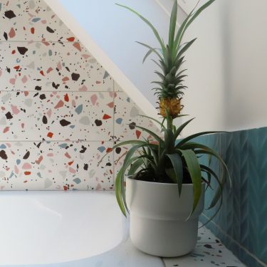 (A képek között a nappalinál, a szülői hálónál és a kádnál először a terv képeit, majd a megvalósult beltér képeit is bemutatjuk)