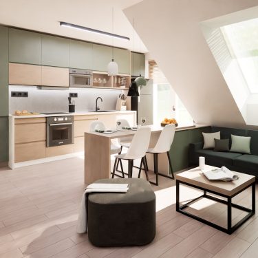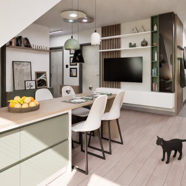 Egy olyan család számára terveztük át ezt a tetőtéri lakást, ahol a két gyerek már elérte, vagy lassan eléri a felnőtt kort. Ez a lakás nem a “klasszikus” értelemben vett otthon lesz, hanem egyfajta élettér-kiterjesztés a család számára. Tökéletes hely, ha valaki egy kis privát szférára vágyik, legyen szó a felnőtt fiúkról, a szülőkről vagy akár a nagyszülőkről.