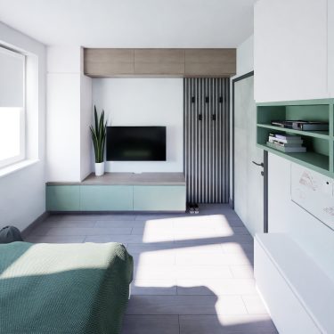A belsőépítészetészeti tervezésnél a legfontosabb szempont a terek minél jobb kihasználása volt. A megkereséskor az épület a kivitelezés fázisában volt már, az ajtói, és padlóburkolatai már ki lettek választva, ezeket adottságként kezeltük, de ezeken kívül szabadon szárnyalhatott a fantáziánk.