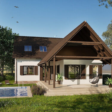 Egy kedves házaspár megkeresett minket, hogy segítsünk nekik és tervezzünk egy kétszintes házat a tulajdonukban lévő telekre. Már az első beszélgetéskor körvonalazódott, hogy a hagyományosnak mondható házak nyerik el tetszésüket, így az építészeti eszközök tekintetében könnyű dolgunk volt. A telek szintén nagyon ideális, fűvel borított, sík, nincs rajta építmény és a szabályozások megengedik a szabadon álló épületformát. Szabadon álló épületformának azt nevezzük, amikor a telek közepén van egy épület: egy oldalon sem ér hozzá a szomszéd házakhoz, körbe tudjuk sétálni.