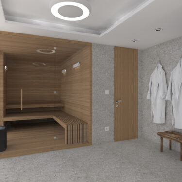 Az alsó szint a kert szintjén helyezkedik el, és egy nagy wellness részlegnek ad otthont. A belső terekben szauna, gőzfürdő és pihenő található, míg a kinti részen medence és terasz nyújt lehetőséget kerti összejövetelek és sütögetések számára. Az alsó szinten továbbá egy vendégszoba és kiszolgáló helyiségek is megtalálhatók, hogy az itt lakók és a vendégek kényelmét és kiszolgálását is biztosítsuk.